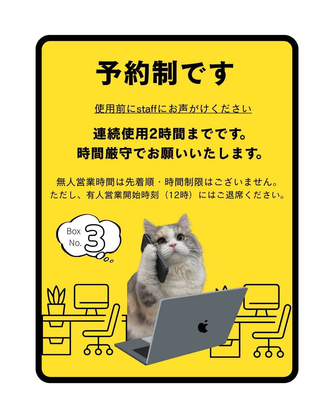 このたび、コワーキングスペース内リモートワークボックスのご利用方法につきまして、仕様を変更いたしましたのでお知らせいたします。